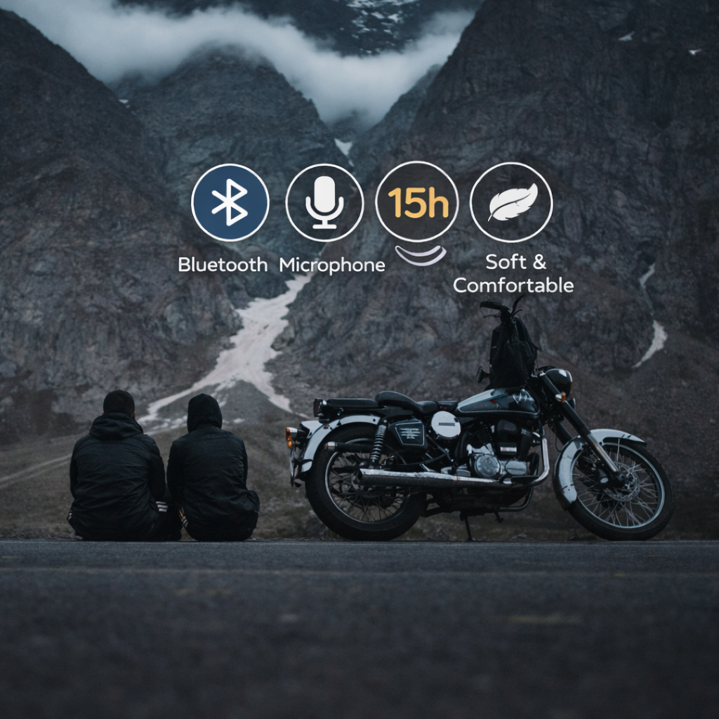 Helmix is designed to be low-profile and comfortable under helmets. For safety, always keep volume at a responsible level and follow local laws and riding guidelines.